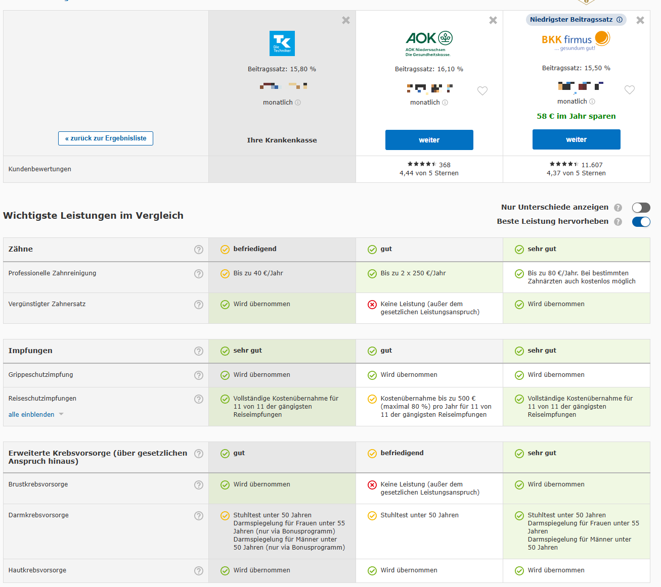 이런 혜택을 비교하는 제일 좋은 방법은 바로 Check 24에 들어가서 비교해보는 것이다.